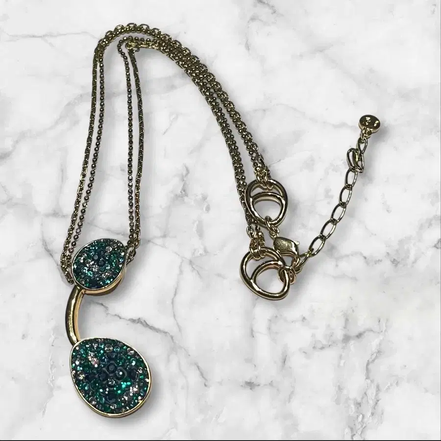 스와로브스키 그린 스톤 더블 모티브 목걸이