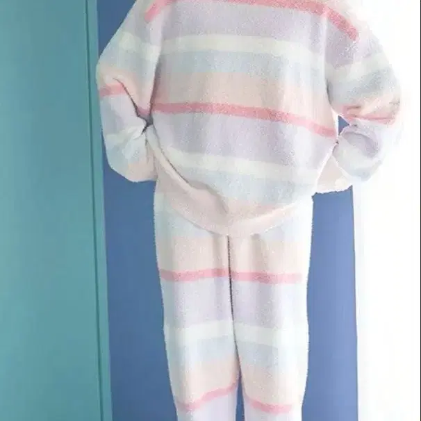 자동 번역되었어요. 원문보기[캔디처럼 컬러풀한 보더 무늬의 베이비 모코 풀오버 & 베이비 모코 컬러풀 롱 팬츠]
