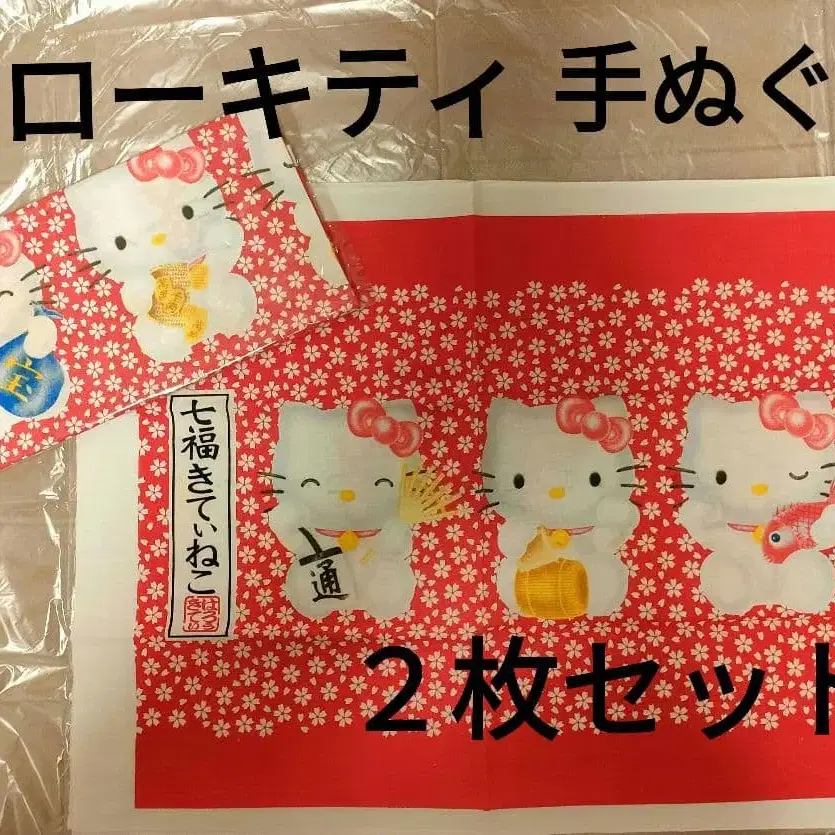 헬로키티 칠복키티 고양이 수건 2장 세트 레어 2004년