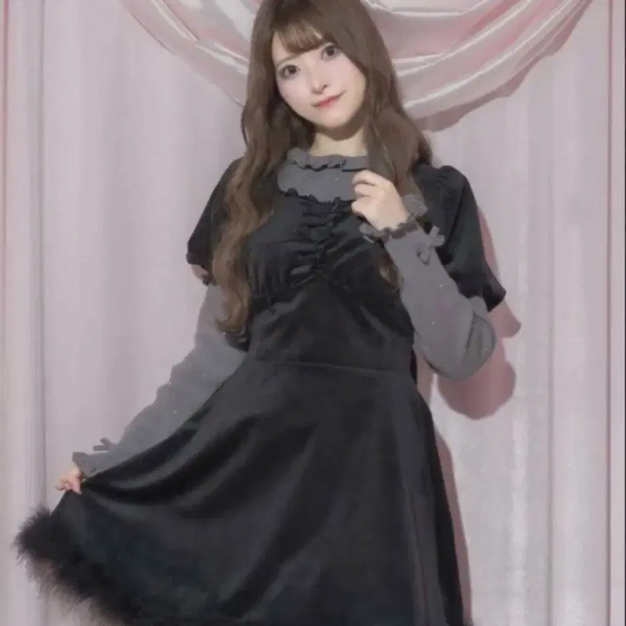 [미사용 새상품] pium 퍼프 슬리브 퍼 원피스 블랙 벨로아