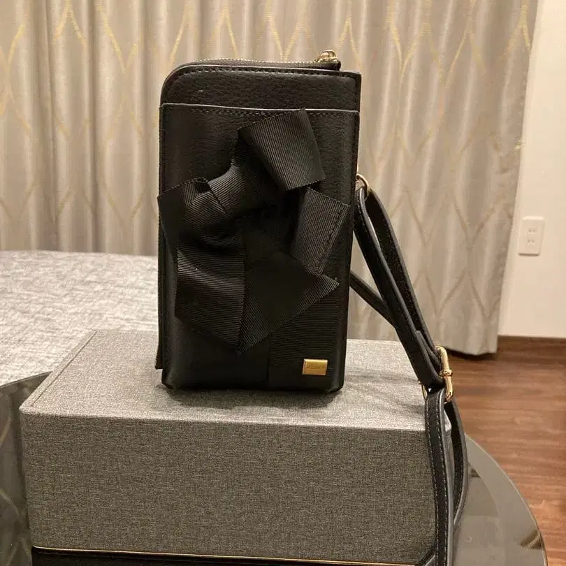 엠즈 그레이시 리본 포함 블랙 스마트폰 숄더백