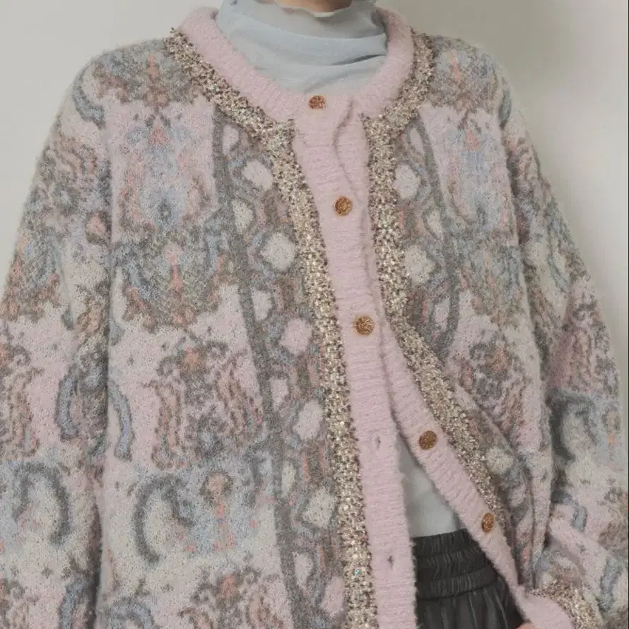 새상품 핑크 계열 무늬 가디건