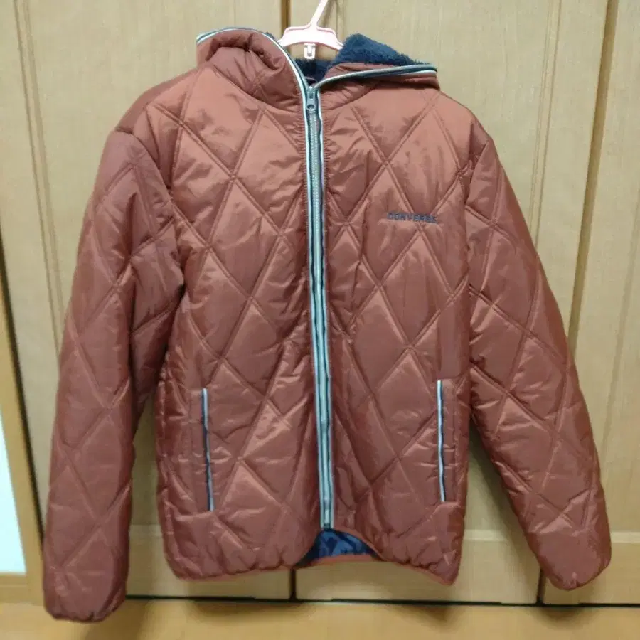 CONVERSE 브라운 다운 자켓 후드 부착
