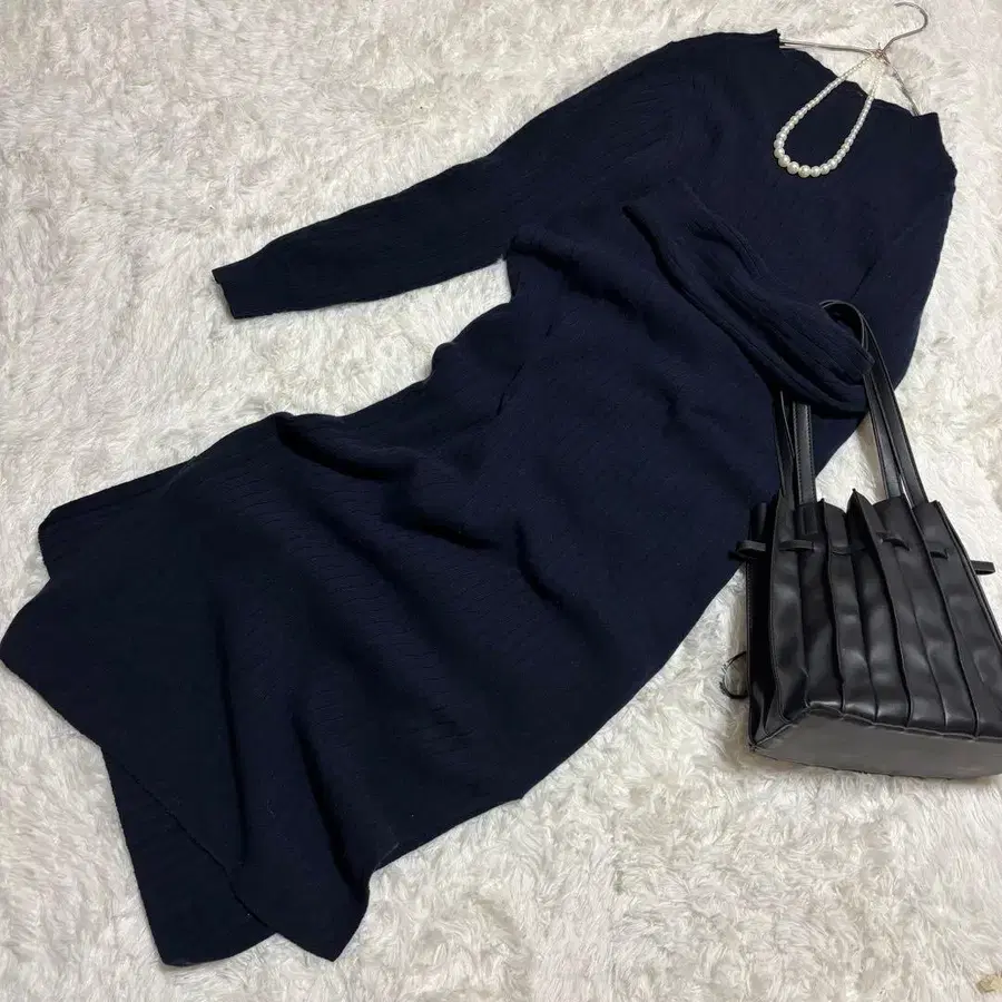 새상품급 캐시미어 혼방 BEAMS LIGHTS 네이비 니트 원피스