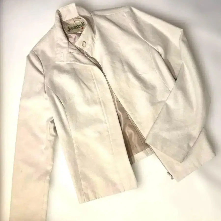 아이보리 자켓 M 스웨이드 느낌 화이트 흰색 하이넥 스타일 포켓 있음