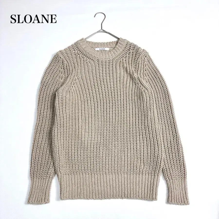 SLOANE 3G 코튼 하찌 볼륨 니트 스웨터 로우 게이지 내추럴 베이지 리브 포멀 캐주얼 스테디셀러