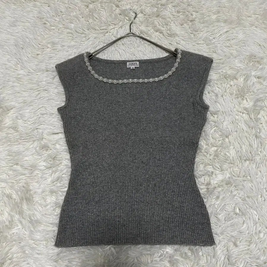 FOXEY 폭시 캐시미어 100% 반팔 니트 스퀘어 넥 풀오버 비쥬 그레이 40 사이즈