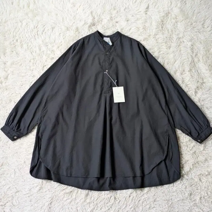 오가닉 코튼 원단을 사용한 풀오버 타입의 밴드 카라 스모크 셔츠입니다.