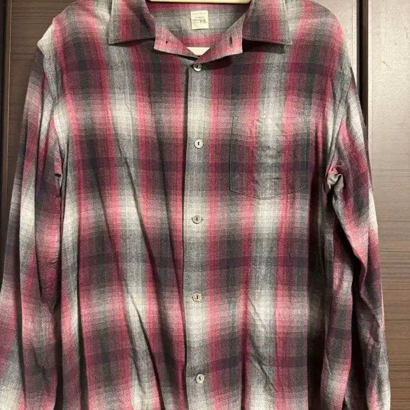 자동 번역되었어요. 원문보기론 헤르만 캘리포니아 (Ron Herman California)의 옴브레 체크 오픈 카라 셔츠입니다.