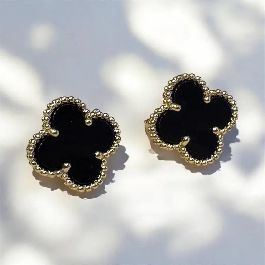 고품질 클로버 귀걸이 블랙 x 골드 금장 장식
