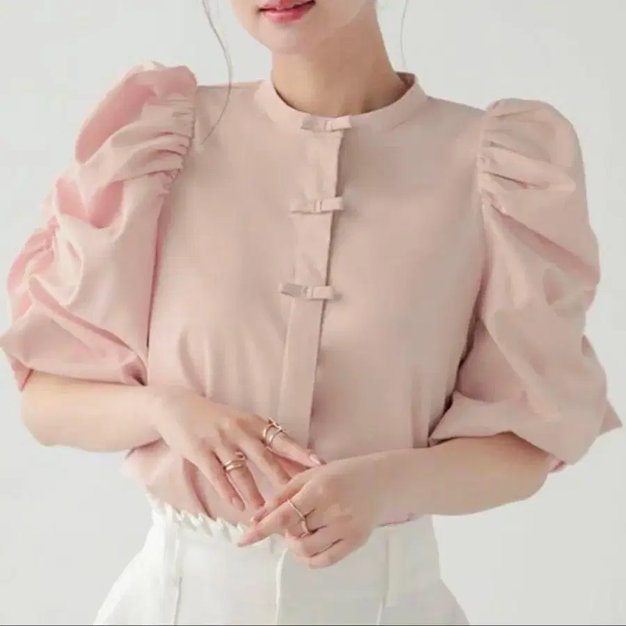 Fit more miku 콜라보 차이나풍 볼륨 벌룬 리본 블라우스