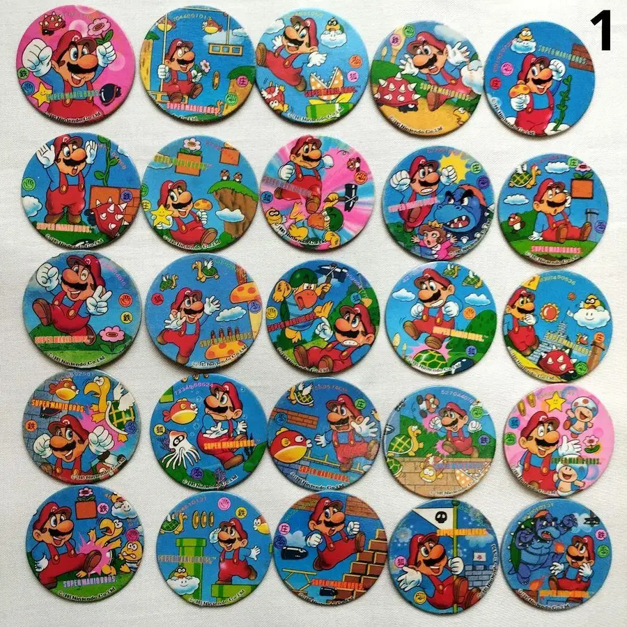 1 쇼와 레트로 당시물 슈퍼 마리오 브라더스 딱지 원형 딱지 25장
