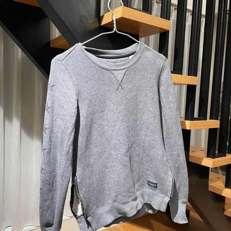 소매에는 자세히 보면 스타가 있고, 사이드에는 지퍼가 있으며, 안쪽은 약간 보송보송하고 두께감이 있어 매우 따뜻한 원단입니다.