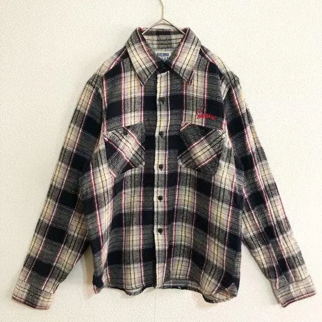 BLUE BUCK 블루백 자수 옴브레 체크 플란넬 코튼 셔츠
