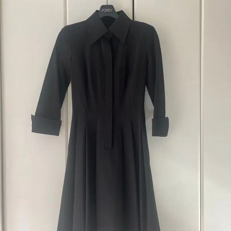 FOXEY NEW YORK 블랙 긴팔 플레어 셔츠 드레스