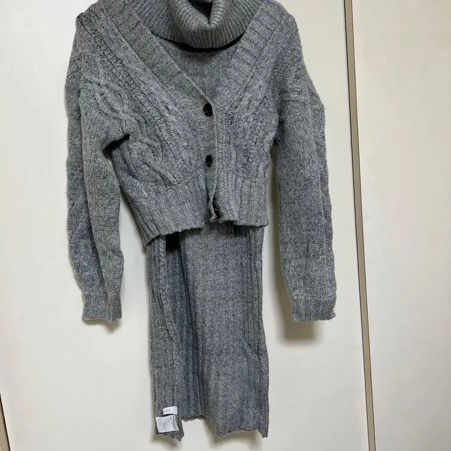 그레이 니트 가디건과 드레스 세트