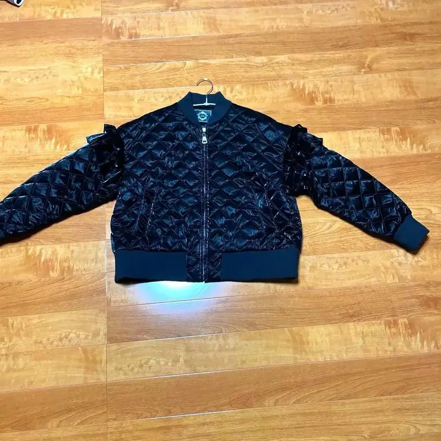 블랙 퀼팅 자켓 프릴 포함