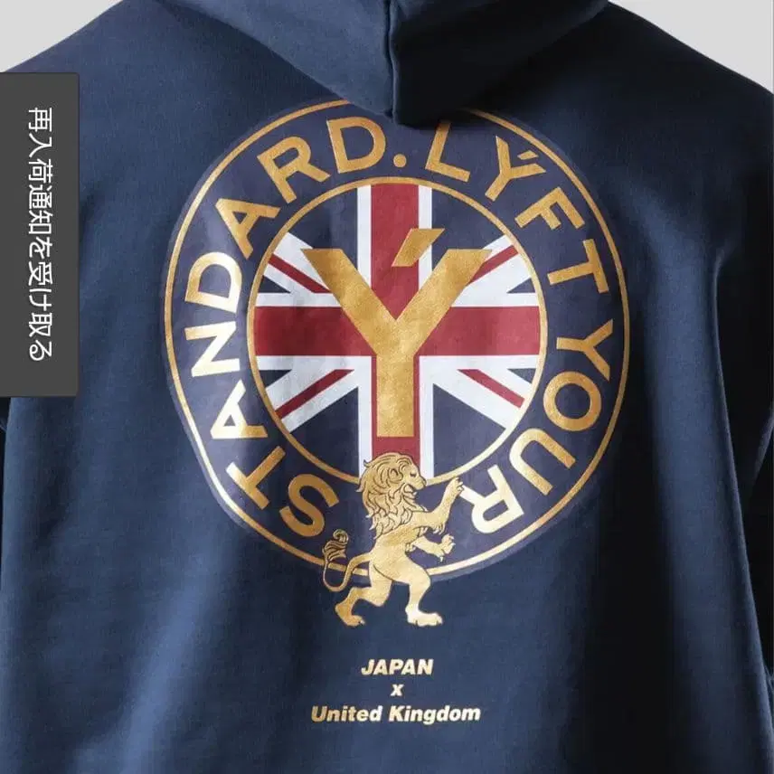 골드로 프린트한 고급스러운 오리지널 엠블럼을 뒷면에 대담하게 프린트한, 쭈리(파일 안감) 맨투맨 원단을 사용한 오버사이즈 후디입니다.