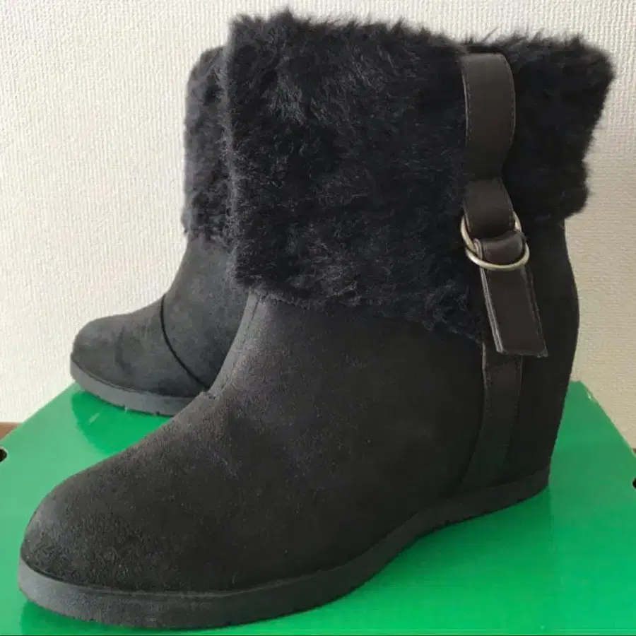 퍼 달린 블랙 스웨이드 웨지 부츠