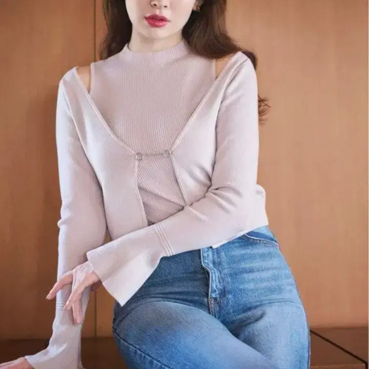 오픈 백 플레어 소매 가디건