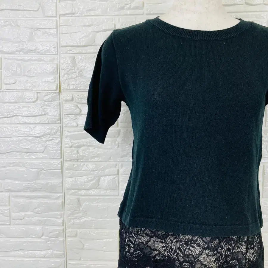 마이달타니안 밑단 레이스 니트 반팔 백 지퍼 블랙 [ 6-22 ]