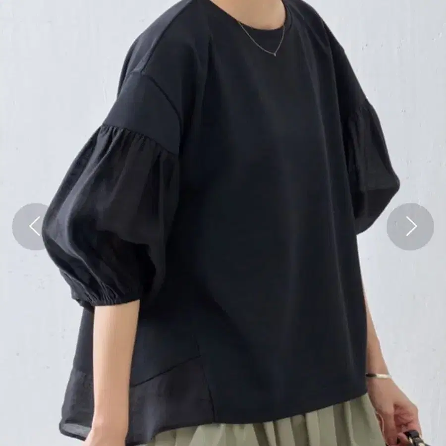 • M'S GRACY 벨로아 티셔츠 프릴 쉬폰 소매 블랙