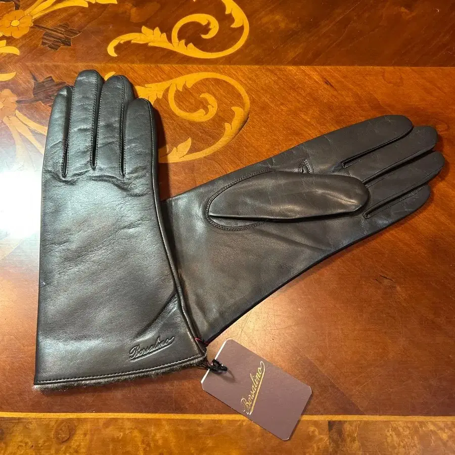 볼사리노 다크 브라운 가죽 장갑, 미사용.