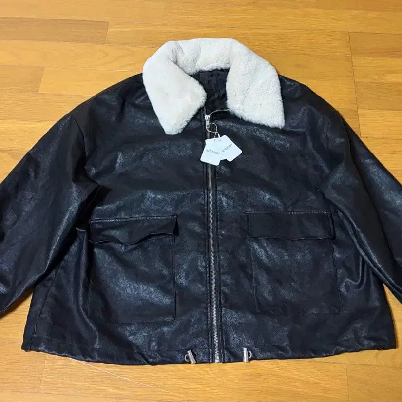 블랙 무스탕 코트 퍼 카라 부착 y2k 헤이세이