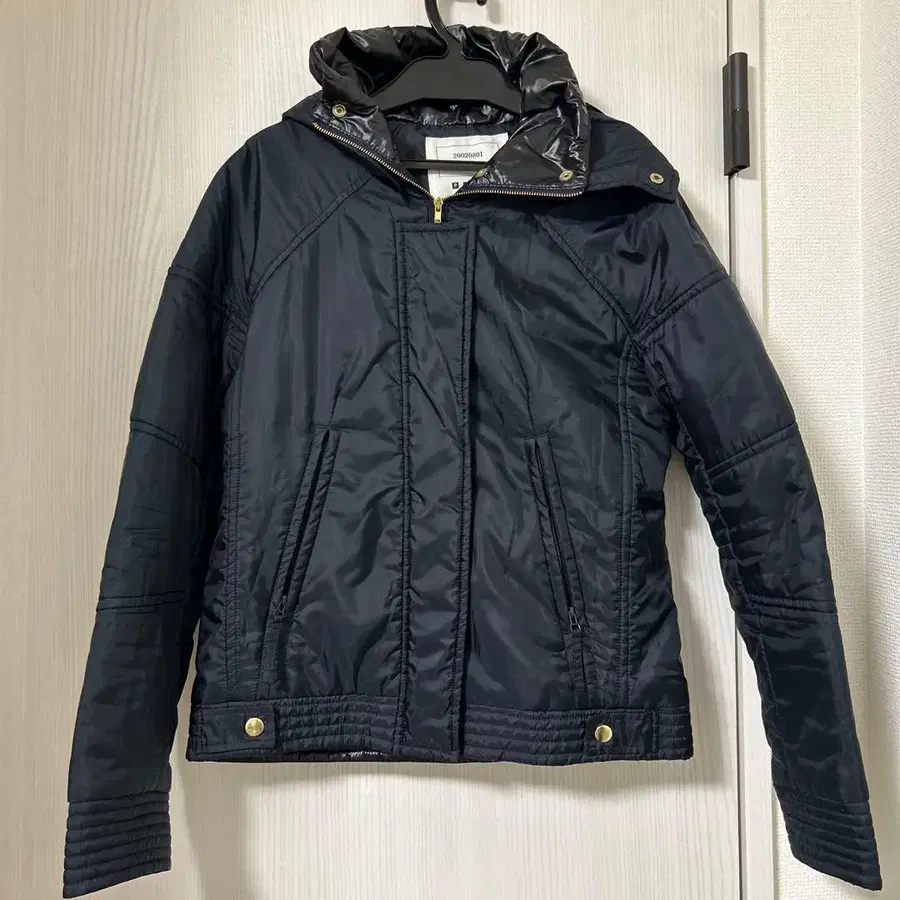 네이비 후드 부착 다운 자켓