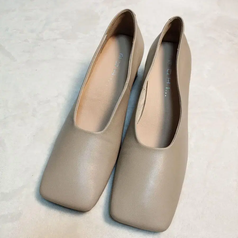 [새상품급] MOHI 모히 베이지 가죽 스퀘어토 펌프스 중간 힐 37