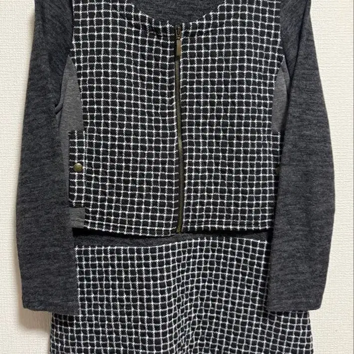 그레이 체크 무늬 터틀넥 2way 원피스