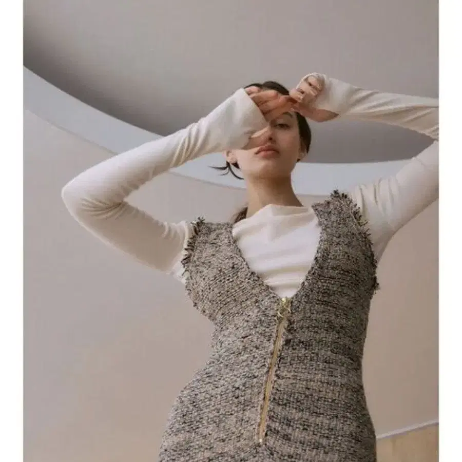 LAGUNAMOON 니트 트위드 프린지 오버롤 스커트 베이지