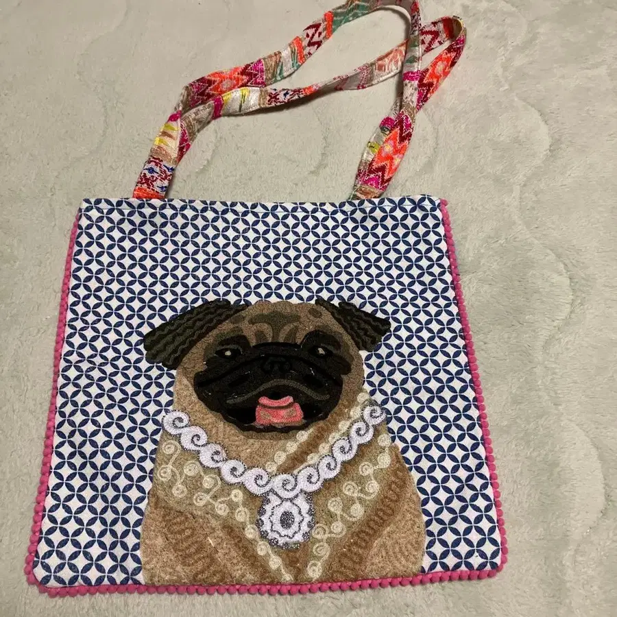 칼마 리빙 목걸이 퍼그 자수 토트백 L 사이즈 애프터눈 티