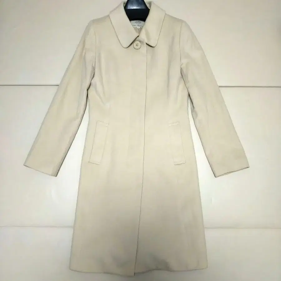 울 100% 롱 코트 아이보리 버튼 있음 허리끈 있음