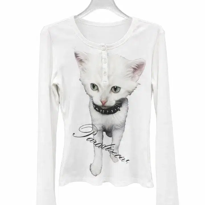고양이 프린트 헨리넥 롱T / 화이트 (Y2K 그런지)