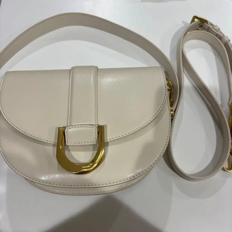 베이지색 숄더백 골드 금장 장식