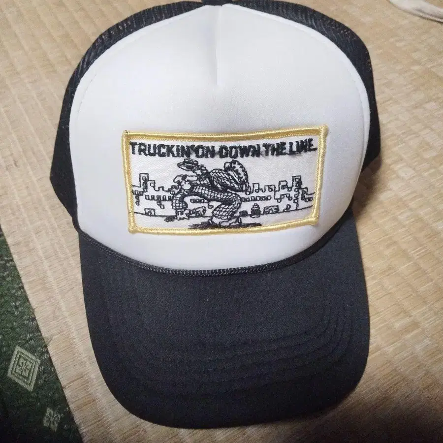 트래커 햇 화이트 블랙 자수 가격 인하 협상 가능