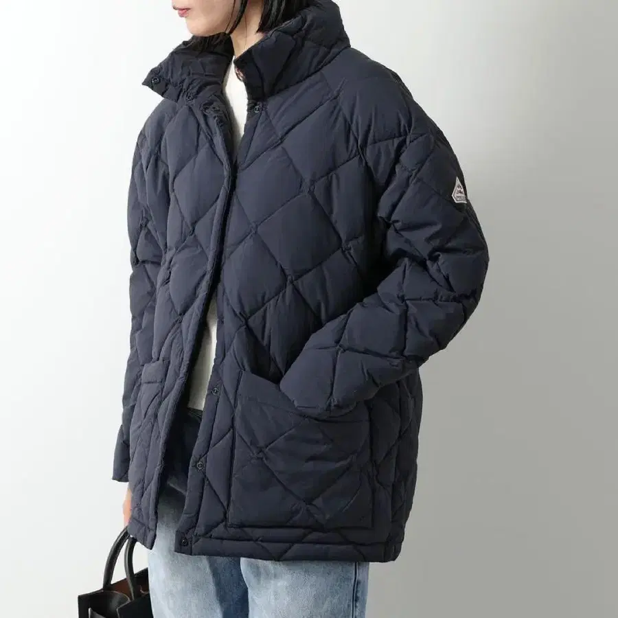 넉넉하고 둥근 실루엣이지만, 높은 옷깃과 다이아 컷의 퀼팅으로 부해 보이지 않고 깔끔하게 보입니다.