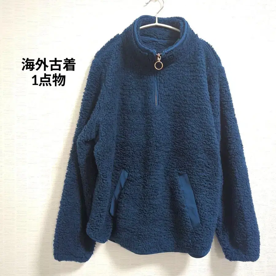 해외 구제 의류 1점 다크 블루 하프 지퍼 플리스 자켓 보아