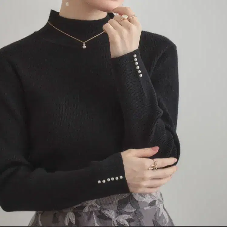 [ 2025AW ] 쿠튀르 브로치 펄 리브 니트 와인 레드