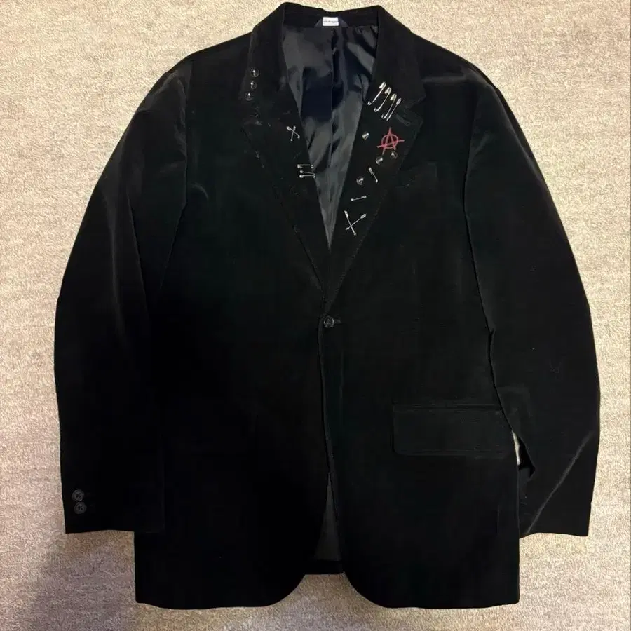 펑크 커스텀 안전 핑 & 스터드 벨로아 블랙 테일러드 자켓