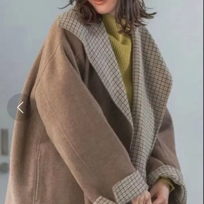 LEPSIM 리버서블 미들 코트 체크 브라운