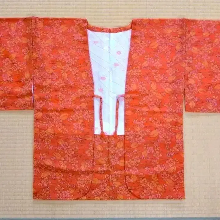 기모노 오렌지 겉옷 쇼와 레트로 도중옷 빈티지 아우터 패턴 고급