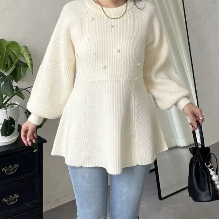 프론트 펄 래글런 페플럼 니트 prose verse 체형 커버 슬림