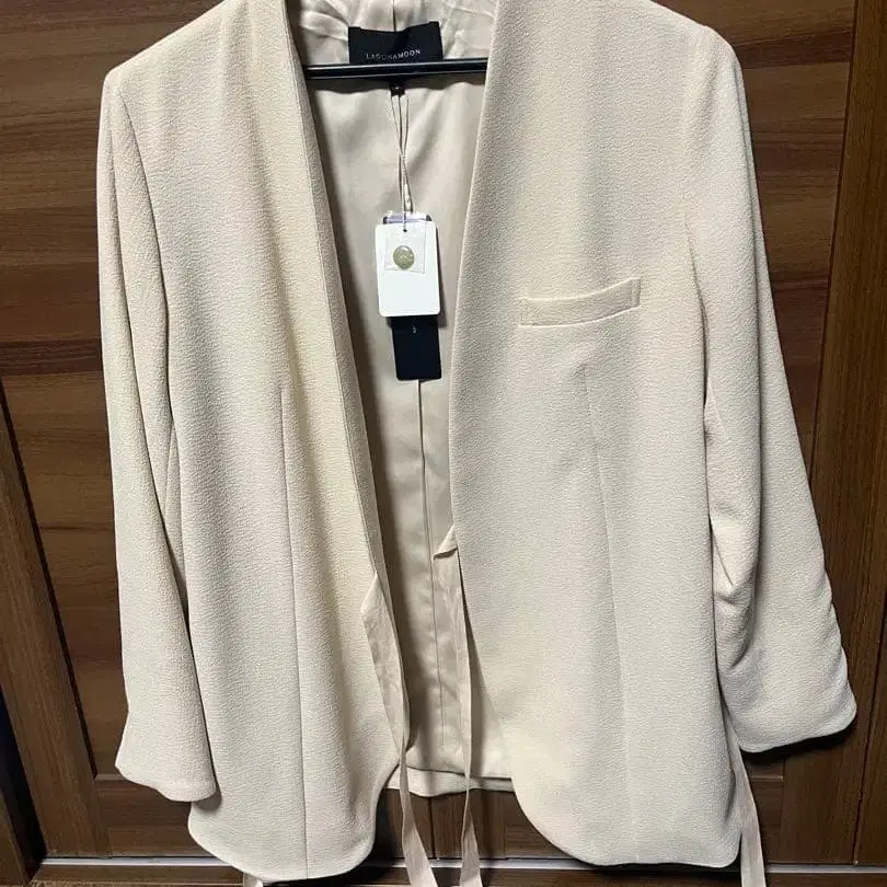 베이지색 노카라 자켓, 리본 포함 디자인으로 스타일리시합니다. - 브랜드: LAGUNAMOON - 색상: 베이지 - 스타일: 노카라 자켓 - 포켓: 있음 - 디자인: 리본 포함 사이즈 S 미사용 새상품, 택 포함 방문해 주셔서 감사합니다.