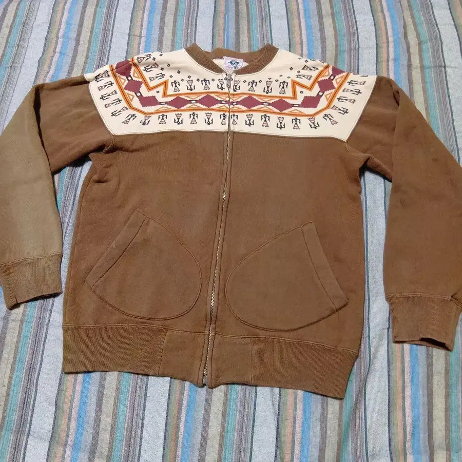 ★ 페로우즈 ★ 스토미 블루 ★ 에스닉 패턴 자수 브라운 풀 집업 트레이닝복