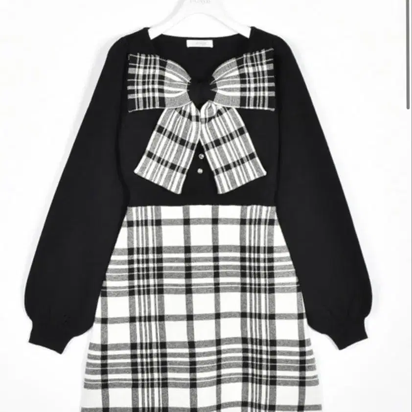 evelyn 리본 체크 니트 원피스 S