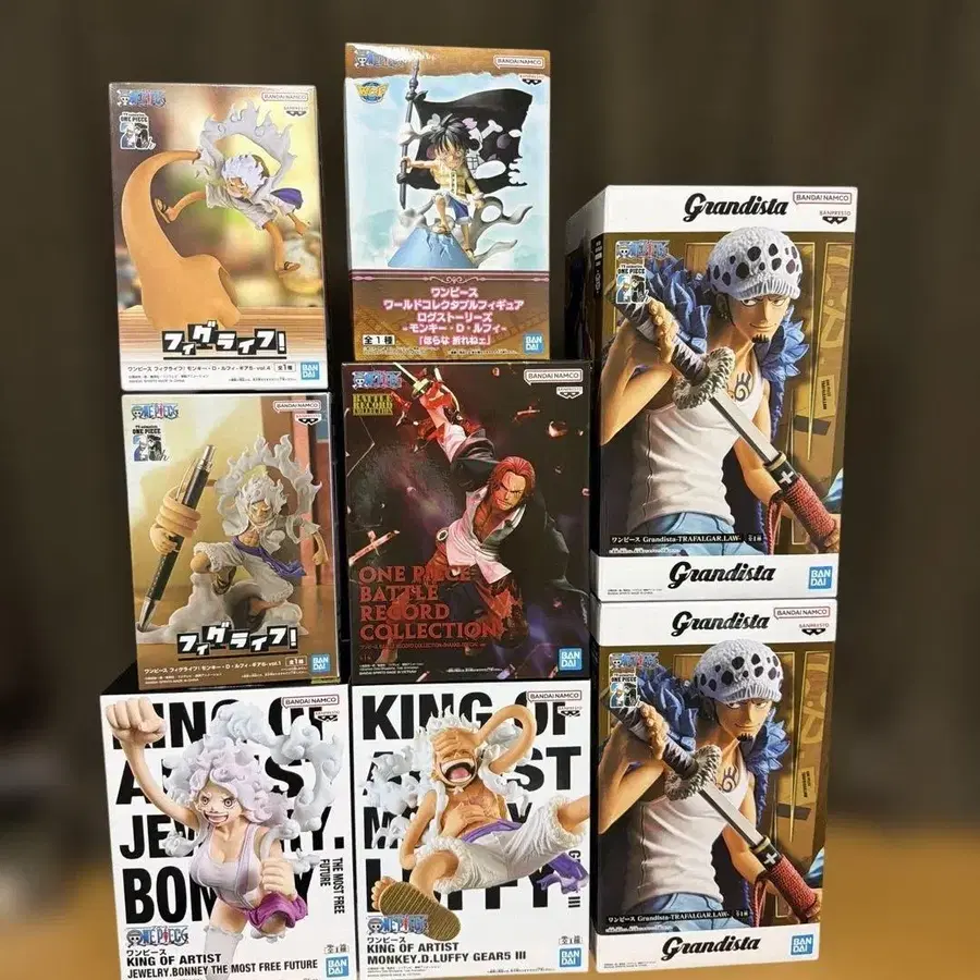 원피스의 인기 캐릭터들을 피규어로 만든 컬렉션 세트. - 피규어명: Grandista 로우 - 피규어명: KING OF ARTIST 몽키 D 루피 GEAR 5 - 피규어명: KING OF ARTIST 주얼리 보니 - 피규어명: 피그 라이프 - 피규어명: ONE PIECE 배틀 레코드 컬렉션 샹크스 ※ 배송비 절감을 위해 상자에서 꺼내 내용물만 발송됩니다. 미리 양해 부탁드립니다. 미개봉, 상자 그대로를 원하시는 분은 +778엔으로 대응해 드립니다. ONE PIECE 샹크스 루피 니카 보니 방문해 주셔서 감사합니다.