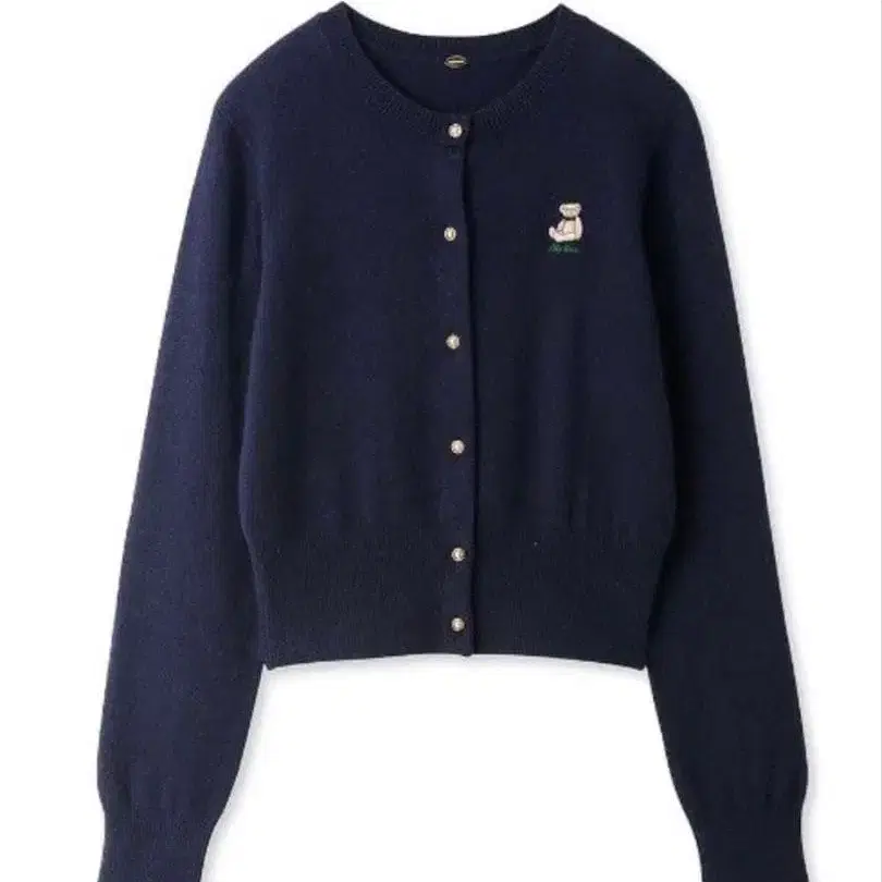 릴리 브라운 가디건 곰 원포인트 자수 네이비 짧은 기장