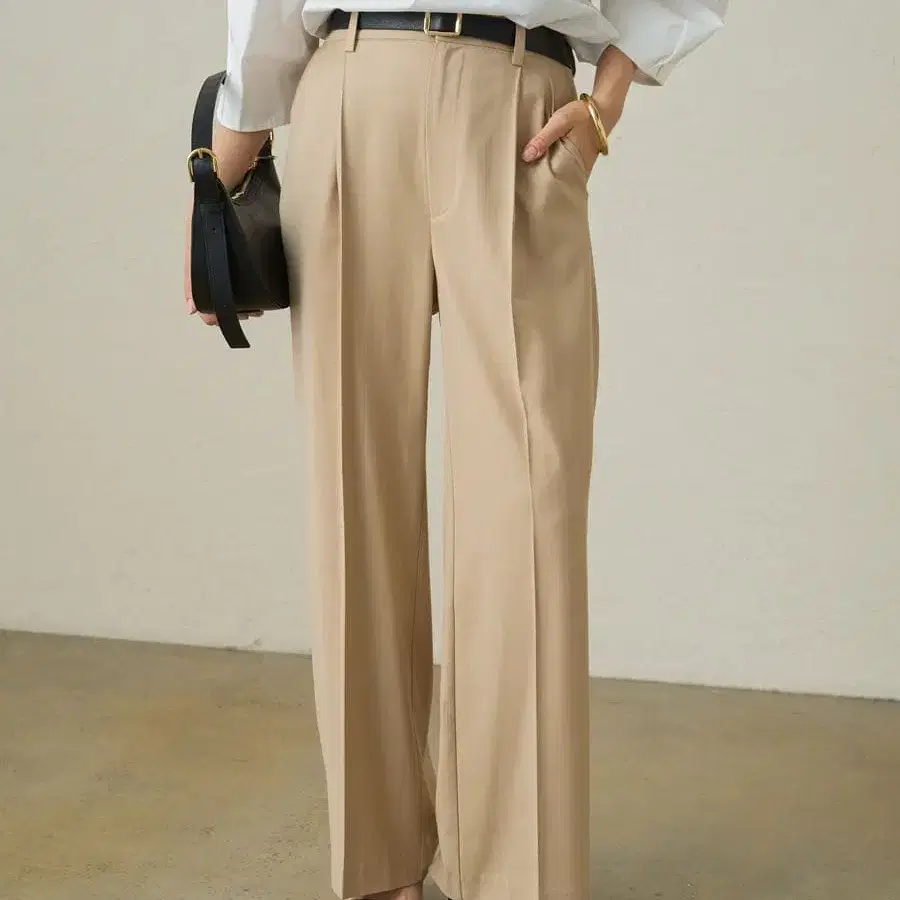 세미 와이드 팬츠 2 라운지 드레스 S 베이지 턱 팬츠 스트라이프